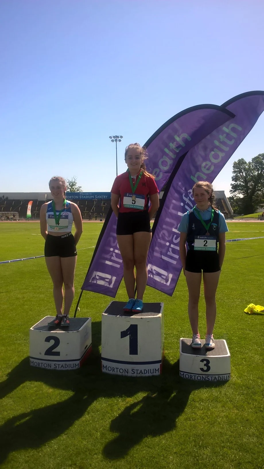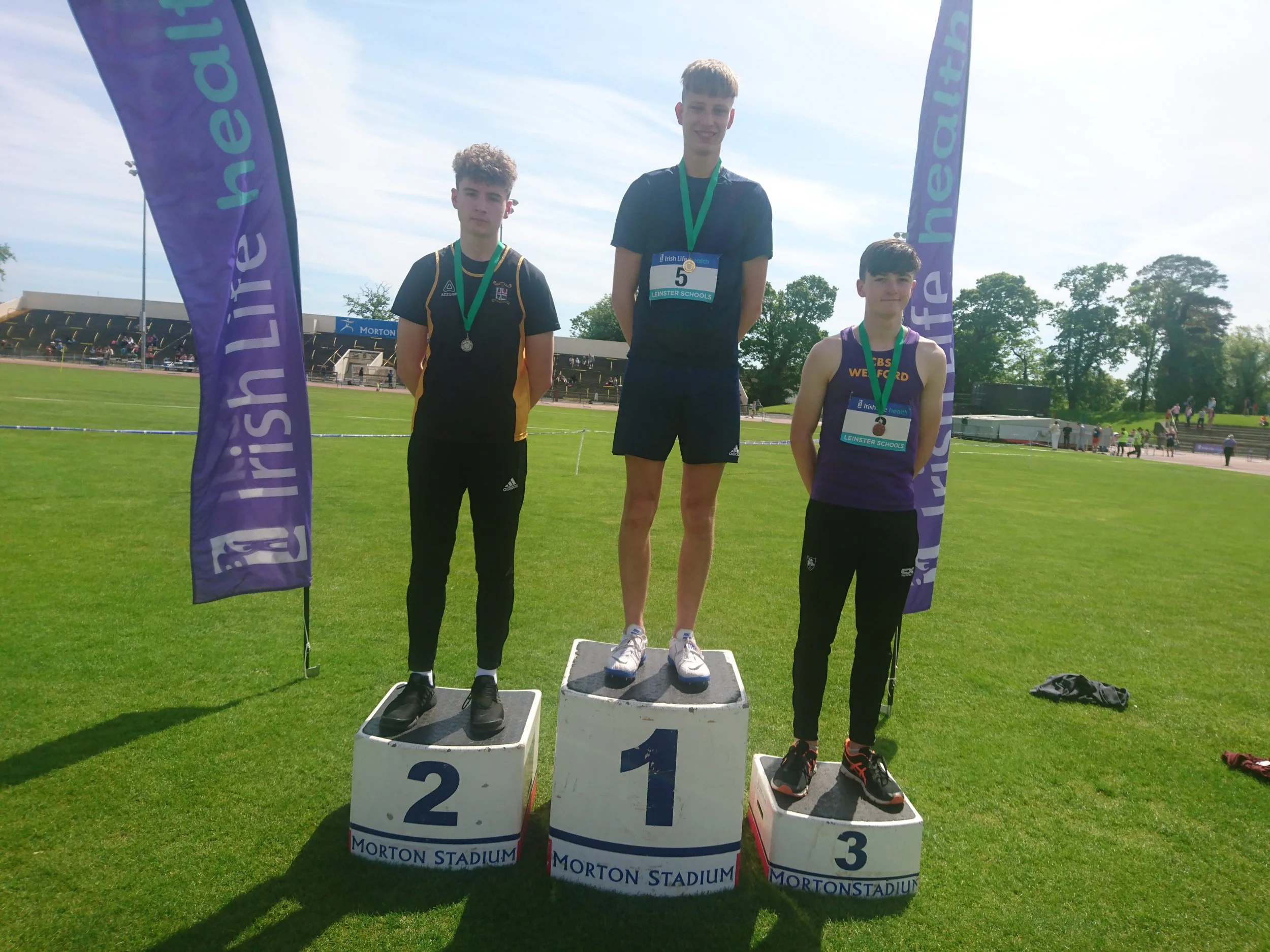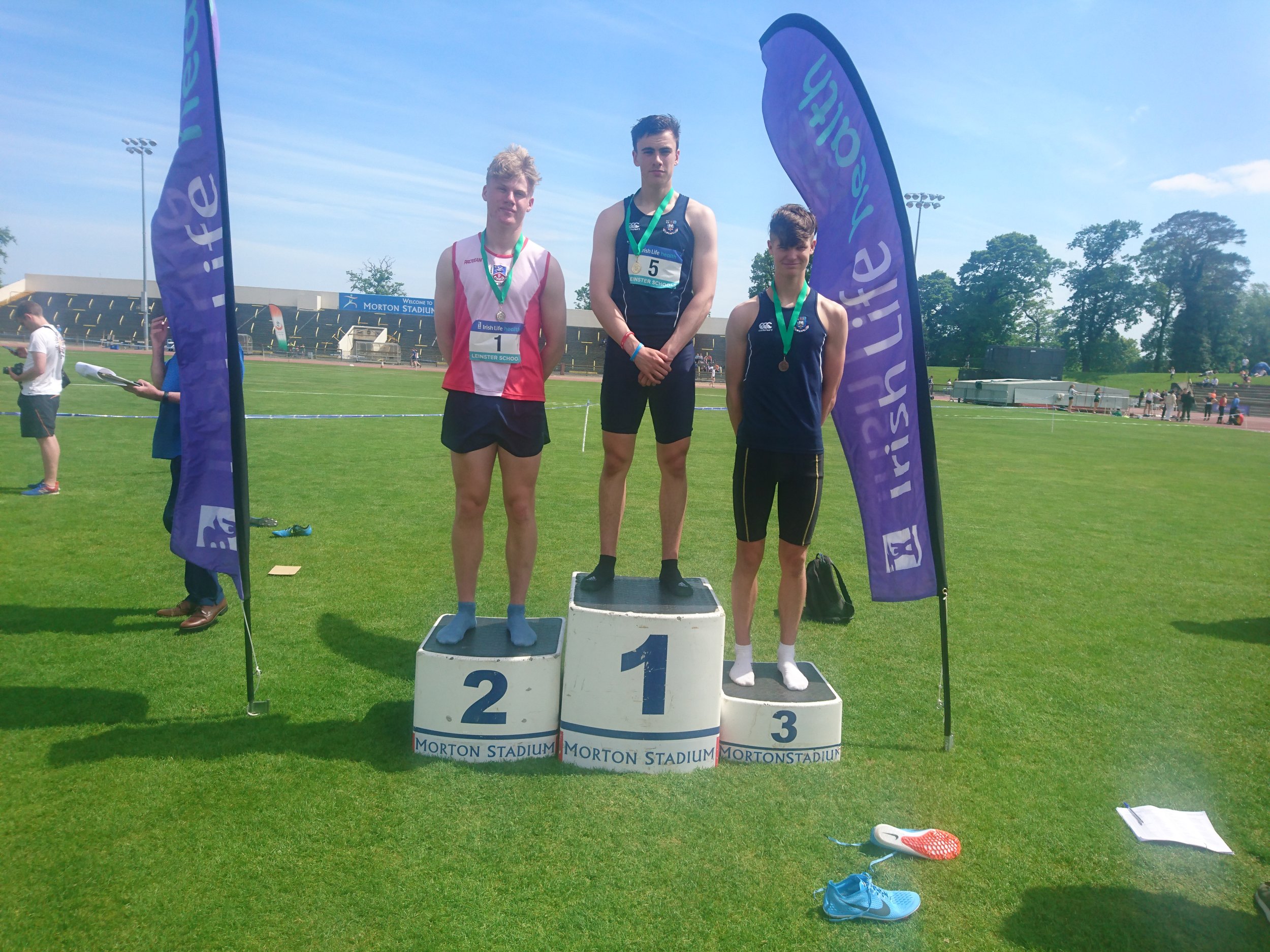 A great performance from Ciarán Carthy (St. Michael’s) saw him come away with three gold medals from the Leinster Schools Championships on Saturday, with victories in the 400m; 400m hurdles and relay. After completing the 400m hurdles, one of the toughest races in athletics, he had to come out a few hours later for the 400m, where he had a great battle with Ciaran McManus (St. Aidan’s), but such is his competitive nature he would not be denied, in a titanic struggle all the way to the finish line. It was one of the great sights of the day to see Liam Jenkins (Oatlands) soar over 1.86 in the high jump for a new P.B. Liam seems destined (pardon the pun) for higher achievements. Other D.S.D., athletes in great form included Aaron Donnelly (St. Gerard’s) beating the national U.19 steeplechase champion, Eoghan Keaney, leading all the way with impressive fluent style over the barriers. Hannah Murray (Wesley) had a great win in the Junior 80m hurdles. Niamh Gowing (Mt. Anville) dug deep to finish 2nd in the Senior Girls 400m, with a new P.B of 56.46. Laura Gallagher, Alexander College, who is underage again next year, showed her quality in the 80m hurdles and 300m hurdles, where she was just pipped on the line by the defending champion, winning silver in both. Molly Hourihan was 2nd in the Senior Girls 400m Hurdles, with Aimee Kenna (St. Mac Dara’s) also taking silver in the Inter Girls 800m. Another to shine was Gavin Doran (CBC) with a brace of bronze medals in the Inter 100m and 200m. Patrick Tucker (St. Michael’s) took bronze in a very competitive Inter 400m, and also anchored the St. Michael’s relay team to gold. Others to impress winning bronze medals; James Holden (St Mary’s) Senior Boys 200m; Brian Maguire (St. Benildus) Senior Boys 1500m; Niamh Carey (Colaiste Iosagáin) Senior Girls 3000m; Charlotte Burke (Holy Child Killiney) Inter Girls 300m; Ben Jones (Pres. Bray) Inter Boys 800m; Emma Ryan (Dalkey) Sen. Girls 1500m; Cian Dunne (St. Colmcille’s) Inter Boys 100m H; Roisin Healy (Rathdown) Inter Girls Long Jump; Eimear Maher (Mt. Anville) Junior Girls 1500m; David Bosch (Wesley) Junior Boys hurdles; Rebecca Lynch (Mt. Anville) Minor Girls 100m; Ellie Dunphy (Beaufort) Minor Girls High Jump; Jamie Byrne (Wesley); Minor Boys High Jump, and Adam Harvey 4th (Blackrock College) and Jack Moraghan (Clonkeen) Inter. Boy 800m. Jill Rufli (Alexander College) won gold in the U.16 girls Long Jump, with Cara Murphy (Alexander) 3rd U.16 Girls 200m. Well done to all!