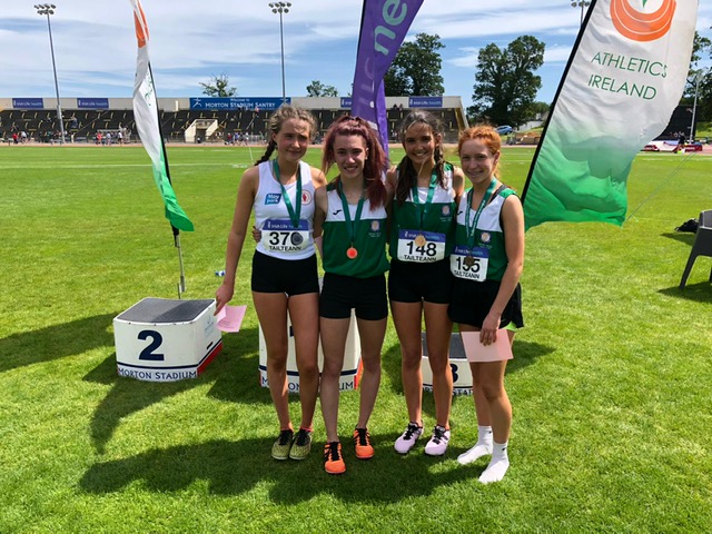 D.S.D., added five more names, to their extensive International portfolio, with fantastic performances from our young athletes, at the Tailteann Games in Santry, on Saturday. The feature of these performances was the range of events covered from sprints, hurdles and middle distance. In the middle distance Morgan Clarkson impressed in the boys 1500m Steeplechase finishing 1st in 4.41.00; with Eimear Maher running a great race in the girls 3,000m to win in 10.35.35. Faye Dervan finished 9th in the 1500m 4.55.82. Gavin Doran ran up to his top form in the 200m, with great finish, to grab 1st in a time of 22.40 (PB). Laura Gallagher finished a gallant 2nd in the 300m hurdles 45.43; to cement her place on the Irish Schools Team. She also ran on the Leinster 4x300m relay team, which finished 3rd, and ran a fine race in the 80m hurdles finishing 6th. Cara Murphy also ran a very good 300m hurdles race, finishing close to Laura, in 3rd place 45.85. Probably the top performance for the club, was that of Cian Dunne, who won the boys 400m hurdles, in a time of 55.53, knocking two seconds off his previous best, a top time for a 16 year old. They will now look forward to moving up to the next level, when they compete on the Irish Schools team, in the Home Countries International on the 20th July at Swansea University. Congratulations to all!
